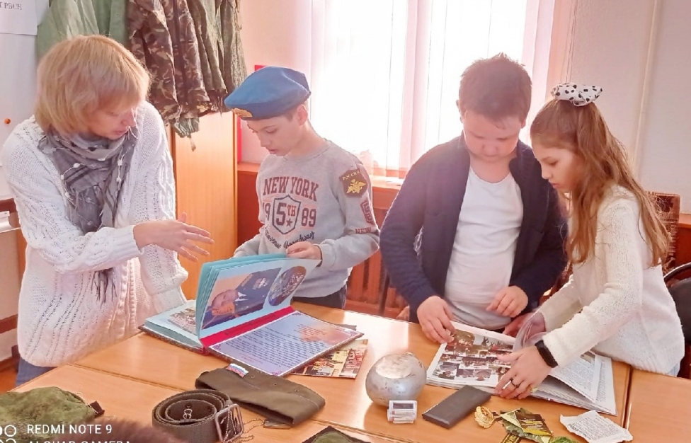Волонтеры Победы Поворенского района в рамках той же акции «Армейский чемоданчик» встретились со Станиславом Синюковым, который принес ребятам предметы армейского быта и рассказал о них. Станислав Владимирович 26 лет посвятил защите Отечества и в звании майор вышел на пенсию. Многое о нём ребятам рассказал его дембельский альбом.