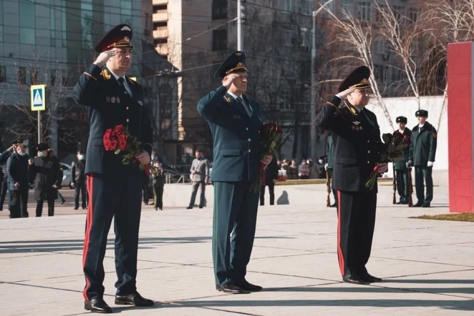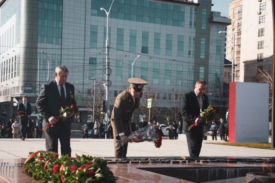 Сегодня на площади Памяти Героев состоялось возложение цветов, приуроченное к празднованию Дня защитника Отечества.