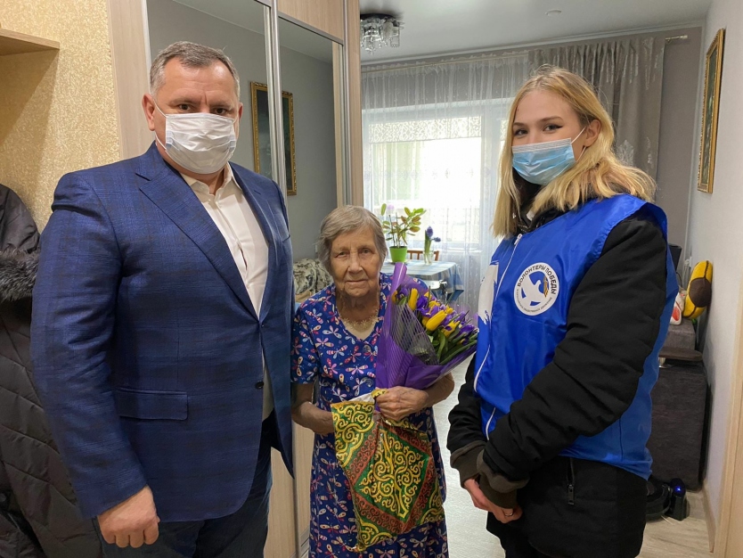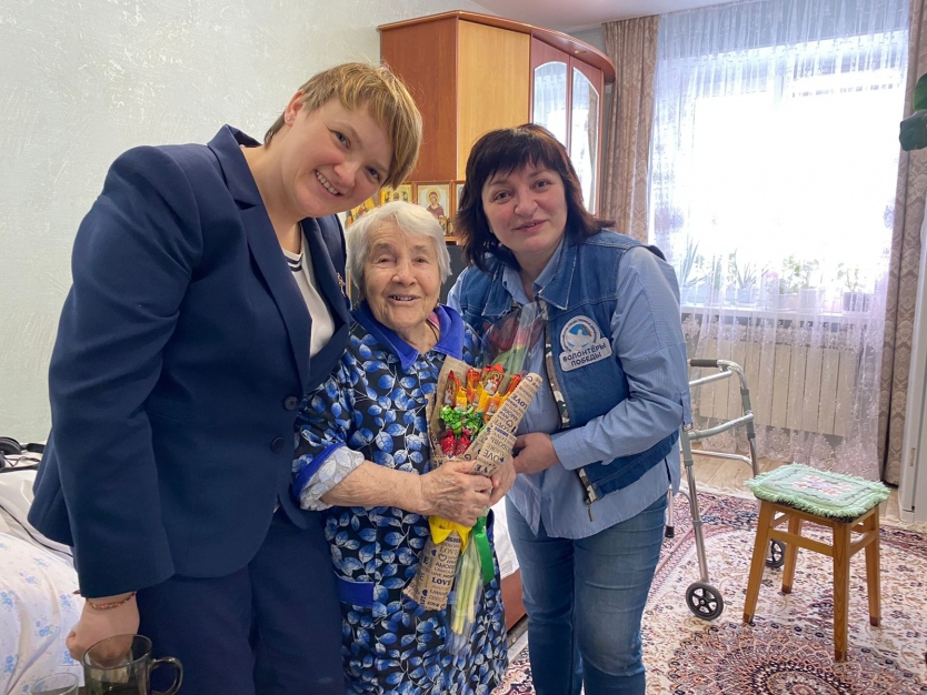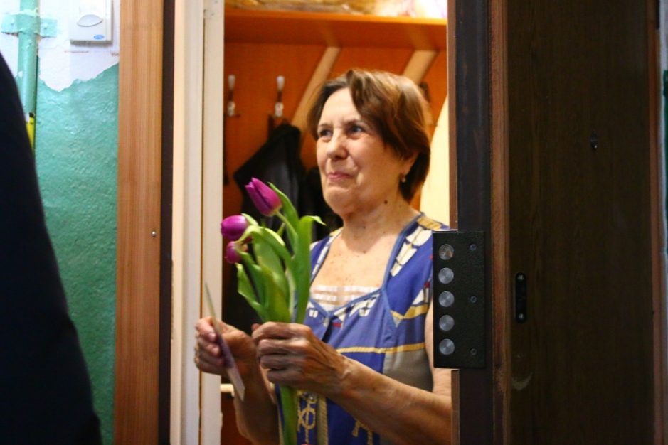 Волонтеры Победы поздравили прекрасных дам с Международным женским днем. Добровольцы навестили ветеранов Великой Отечественной войны, а также беженцев из Луганской и Донецкой Народных Республик.