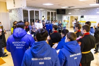 Добровольцы из Ямало-Ненецкого автономного округа начали своё праздничное утро с поздравления местных врачей, которые находятся на дежурстве и борются с коронавирусной инфекцией. Волонтёры подарили им «сладкие букеты» из конфет. На улицах региона Волонтёры Победы поздравили сотрудниц полиции и ГИБДД, вручив им цветы. В школах добровольцы провели мастер-классы для учеников по изготовлению открыток, которые ребята подарят своим матерям и бабушкам.