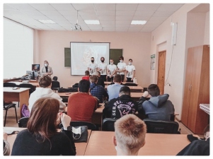 Волонтёры познакомили студентов с историей зарождения праздника и богатой на Героев Отечества историей России и вспомнили и о Героях, защищавших подступы к городу Петрозаводску во время Великой Отечественной войны, посмотрев фильм «На земле отцовского подвига. Об обороне Петрозаводска».