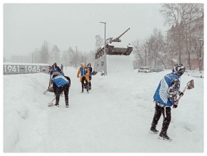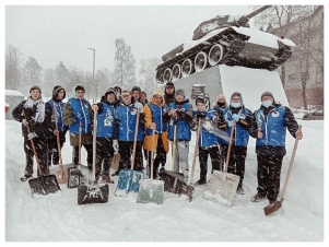 В преддверии праздника Дня защитника Отечества волонтёры убрали снег и навели порядок на территории вокруг памятника воинам-освободителям «Танк Т-34», установленный в честь 25-летия освобождения города Петрозаводска от финских оккупантов, расположенный в сквере И.С. Молчанова (советского военачальника, первого военного коменданта города после окончания советско-финской войны (1941-1944), почетного гражданина Петрозаводска)