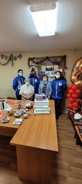В рамках Всероссийской акции #ВамЛюбимые в это воскресенье добровольцы муниципального штаба регионального отделения Движения "Волонтеры Победы" города Мурманска посетили несколько организаций, состоящих из ветеранов и поздравили женскую половину с наступающим праздником 8 марта.