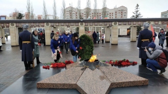 В День защитника Отечества, в Казанском парке Победы прошла церемония возложения цветов к Вечному огню.