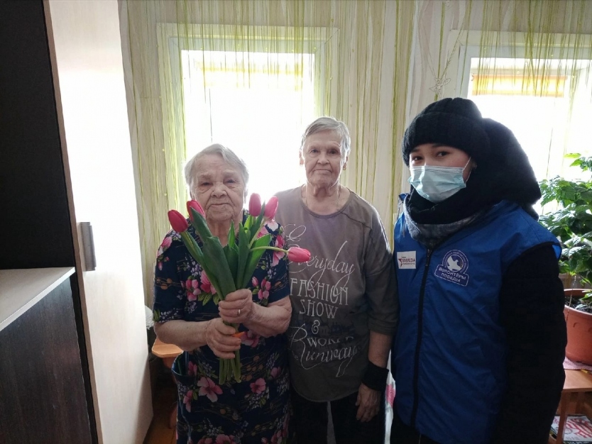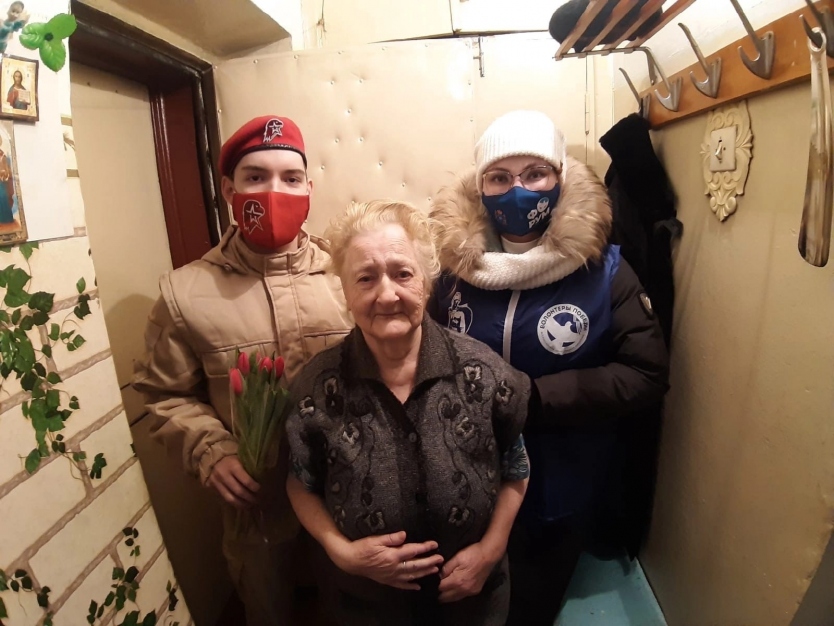 К акции присоединились и Волонтёры Победы города Бийска. Ребята навестили ветеранов вместе юнармейцами города Бийска. Они также подарили праздничные цветы и подарки, а также пожелали женщинам крепкого здоровья, улыбок, весеннего настроения и внимания близких!