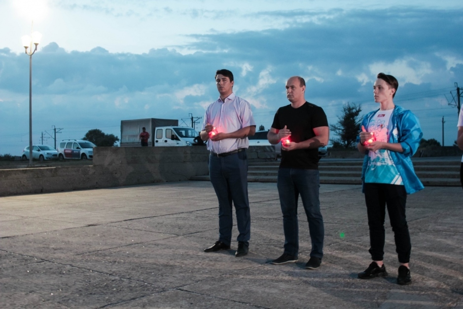 К мероприятию в Евпатории присоединился Председатель Государственного комитета молодежной политики РК Сергей Селимов, который вместе с управлением по делам семьи, молодежи и спорта администрации города Евпатории и Волонтерами Победы почтили падших в Великой Отечественной войне и зажгли свечи памяти. Участники акции выложили свечами слово «Помним» перед мемориалом.