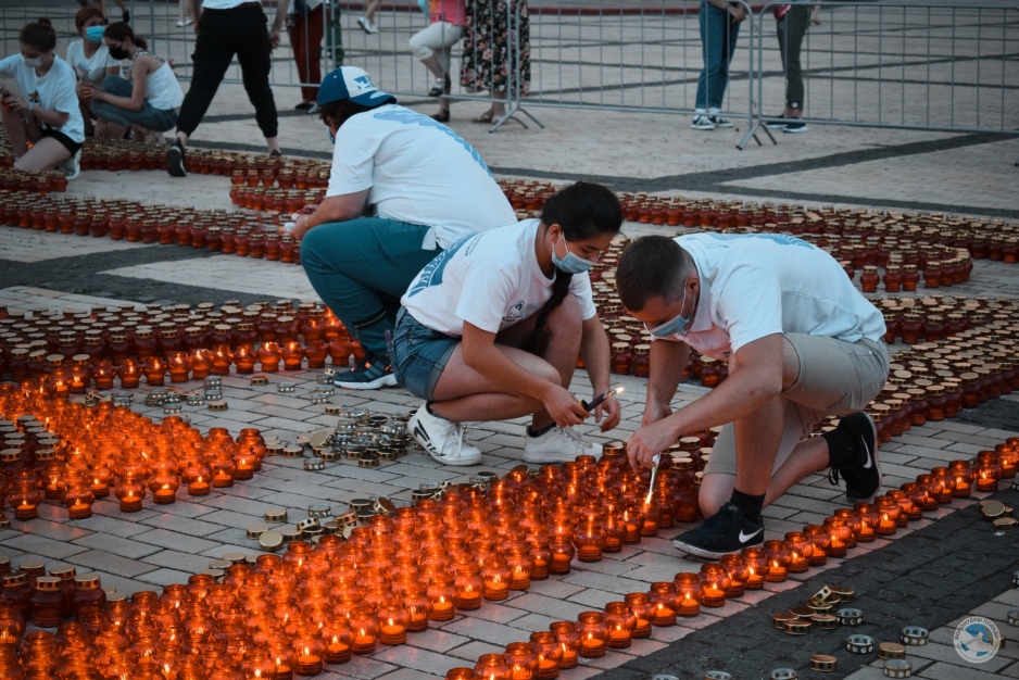Во время выставления картины в городе была неблагоприятная погода для проведения данного мероприятия. Не смотря на все трудности, наши добровольцы продолжили собирать картину, а поздно вечером зажгли свечи тем самым почтили память героев.