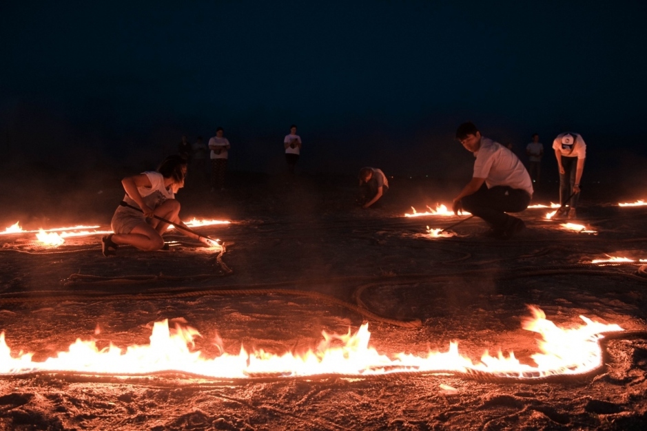 В Евпатории была воссоздана картина в форме монумента «Воин-освободитель», которая была изображена на песке посредством канатов вдоль береговой линии. Место картины – памятник Евпаторийскому десанту. Длина инсталляции составила 15 метров, ширина – 5 метров.