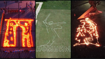 А в городе-герое Керчь представлена картина в форме памятника «Тыл-фронту», которая была изображена посредством выставления «неугасаемых лампадок». На создание такой картины было использовано 3525 свечей.