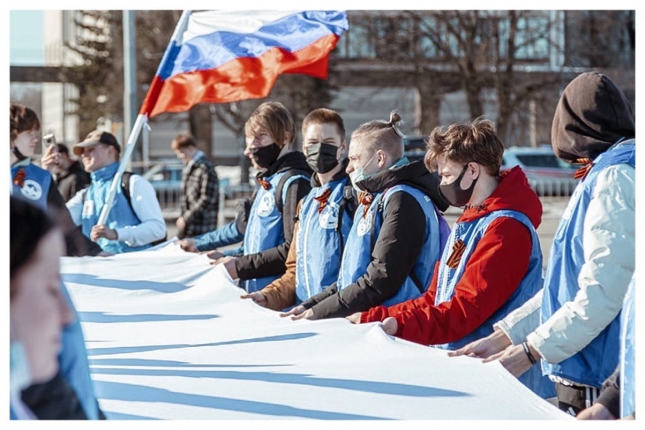 Волонтёры Победы Республики Карелия, участники военно-патриотического клуба «АРМАДА» Петрозаводского автотранспортного техникума и представители других молодёжных объединений приняли участие в мероприятии «Крым наш».