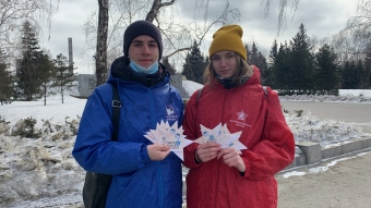 Добровольцы в Алтайском крае провели акцию «Звёзды Героев» совместно с активистами Бессмертного полка. Молодежь вышла на площадь Победы города Барнаула, где раздали жителям краевой столицы листовки в виде звезды с информацией о Героях Алтайского края, а также о их подвиге. Волонтёры Победы рассказали о заслугах М.Т. Калашникова, В. А. Шаманова и других Героев России.
