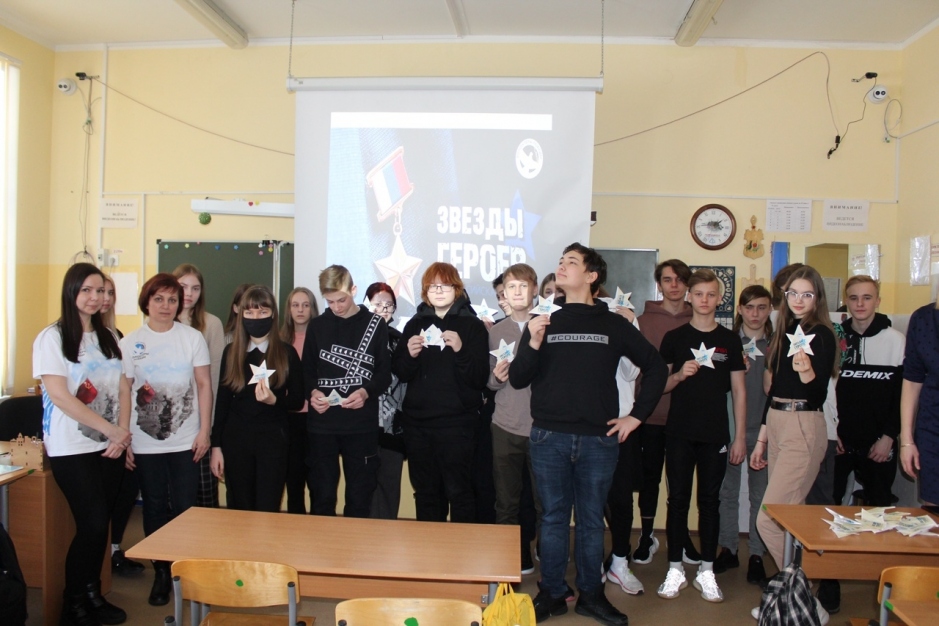 В рамках Акции для восьмиклассников Кольской СОШ №2 проведен урок мужества «Звезда Героя». Ребята познакомились с нашими выдающимися соотечественниками, которые носят звание Героя Российской федерации и награждены медалью «Золотая Звезда», чей труд, творчество, сама судьба уже стали неотъемлемой частью истории нашей страны.