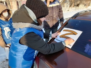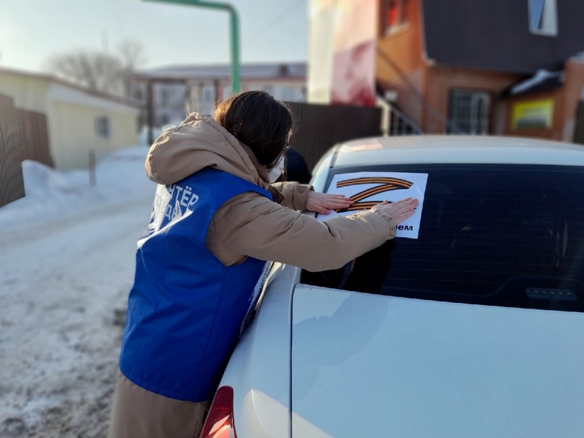 Волонтеры Победы Борского района раздали автомобильные наклейки со знаком в виде латинской буквы «Z». Прикрепив наклейку на автомобиль, автомобилисты Борского района выражают слова поддержки российской армии, задействованной в рамках спецоперации на Донбассе.