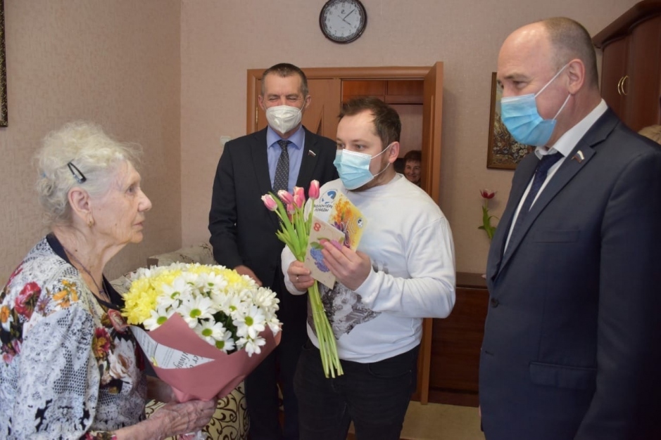 5 марта Волонтеры Победы и представители регионального заксобрания навестили Маргариту Васильевну, выразили ей слова огромной благодарности, пожелали благополучия, всех земных благ и здоровья, вручили символ весны - тюльпаны и праздничные открытки от Движения. Также гости поздравили ветерана и ее дочерей с наступающим Международным женским днем.