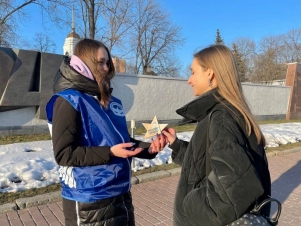 Волонтеры раздавали прохожим заранее заготовленные "звездочки", внутри которых находилась информация о героях Липецкой области, удостоенных звания "Герой России"!