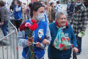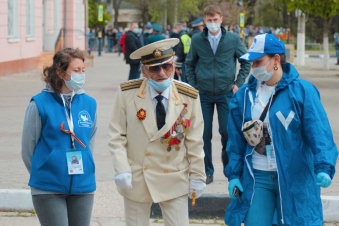 Задачей наших добровольцев было сопровождать ветеранов, обеспечить всем необходимым и провести с ними время на празднике.