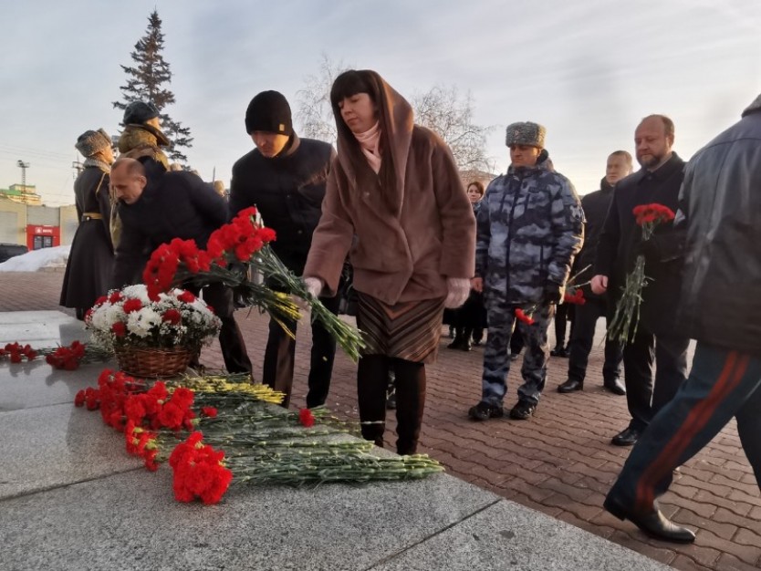 Памятные мероприятия начались с торжественного возложения цветов на Мемориале Славы. Здесь в церемонии приняли участие полномочный представитель Президента Российской Федерации в Сибирском федеральном округе Сергей Меняйло и губернатор Алтайского края Виктор Томенко.