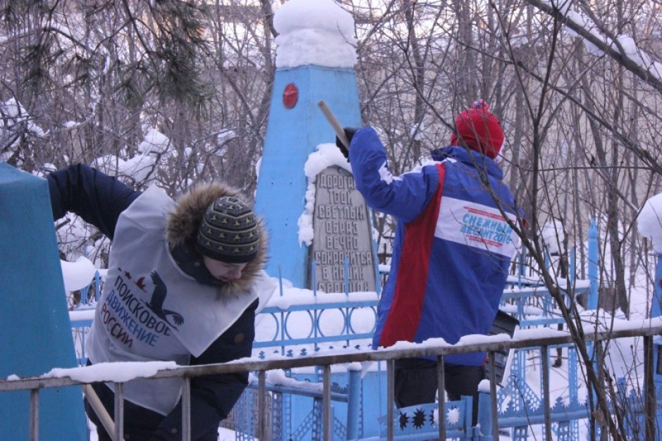 После на Булыгинском кладбище, которое в народе называют воинским, «Волонтеры Победы», представители поискового движение России, участники проекта «Победа в каждом из нас» провели уборку и расчистку от снега мест захоронения героев Великой Отечественной войны.