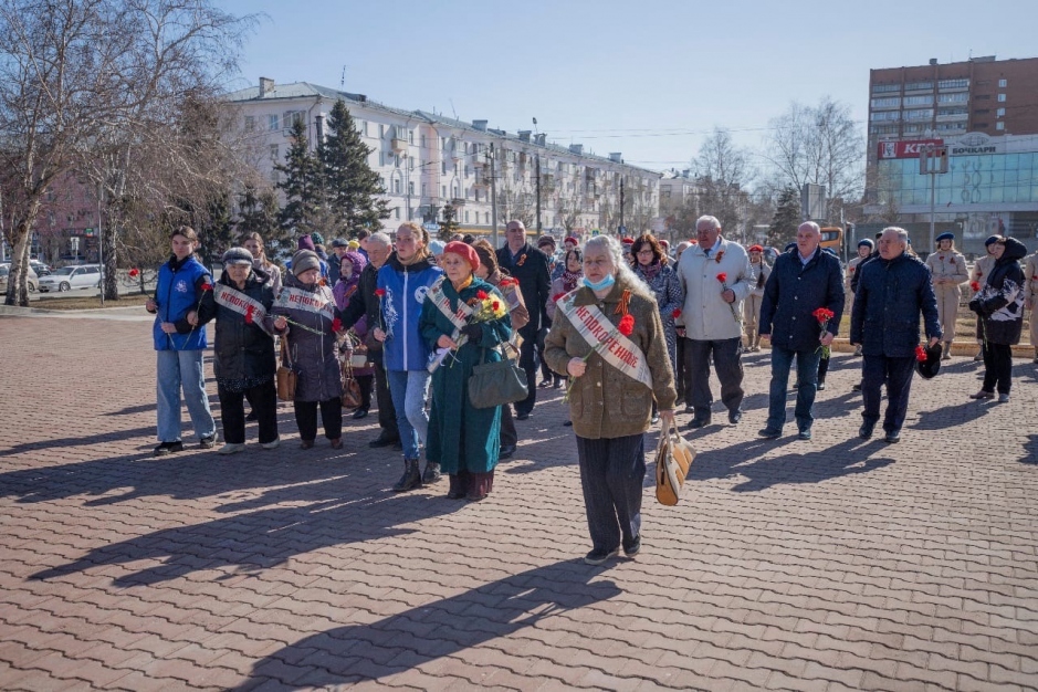 Сегодня в краевой столице в память об освобождённых узниках нацистских концлагерей прошла церемония возложения. Волонтёры Победы Алтайского регионального отделения сопровождали участников тех страшных дней и вместе с ними возложили к мемориальному комплексу алые гвоздики. Почтить память погибших узников также собрались отряды юнармейцев и представители социальной защиты.