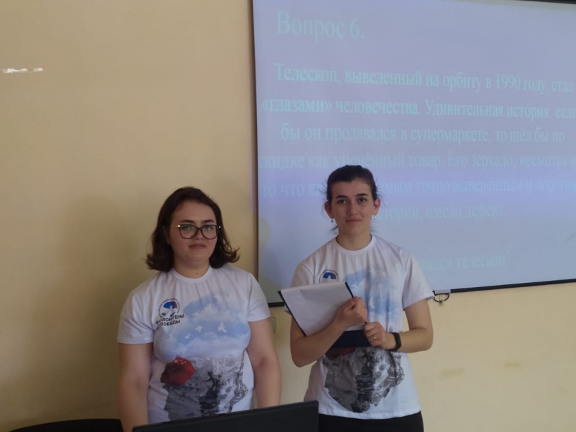 Сегодня Волонтёры Победы местных отделений провели для школьников увлекательную интеллектуальную игру «Космос рядом». Ребята разбивались на команды и отвечали на вопросы космической тематики. Они также отметили, что такой формат игры очень интересный и готовы ответить на более сложные вопросы!