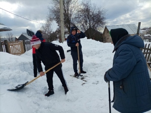 Волонтеры Победы поселка Рудничный Кировской области помогли Лидии Сергеевне Кирсановой убрать снег на придомовой территории.