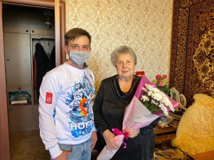14 апреля наши волонтёры поздравили с 85-летним юбилеем жительницу Блокадного Ленинграда Власову Александру Николаевну.