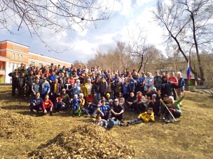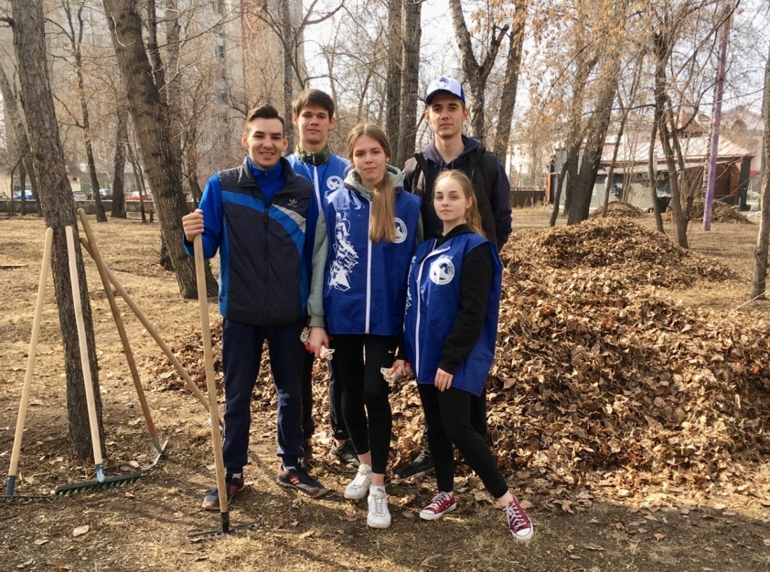 Волонтеры Победы Республики Хакасия приняли участие в уборке территории Центра культуры им. Н.Ф. Кадышева, убрав скопившуюся сухую листву.