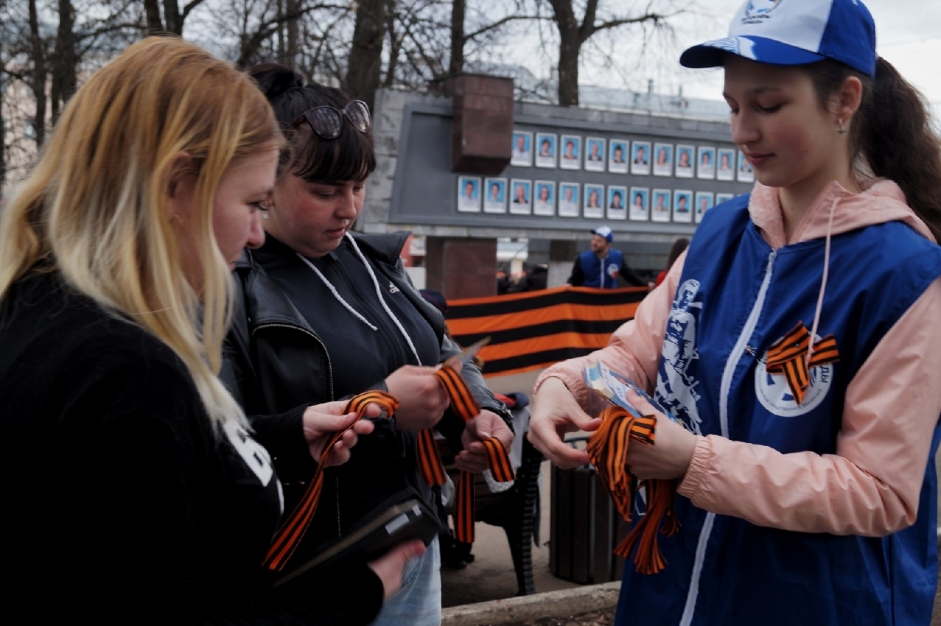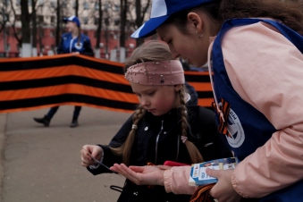 «Георгиевская ленточка» – символ памяти, связи поколений и воинской славы. По традиции, вместе с главным символом Победы добровольцы вручают листовки с историей ленты и рекомендациями по ее ношению. В этом году к традиционным способам крепления Георгиевской ленты добавится символ «Z», так как лента является символом доблести солдат и в наши дни.