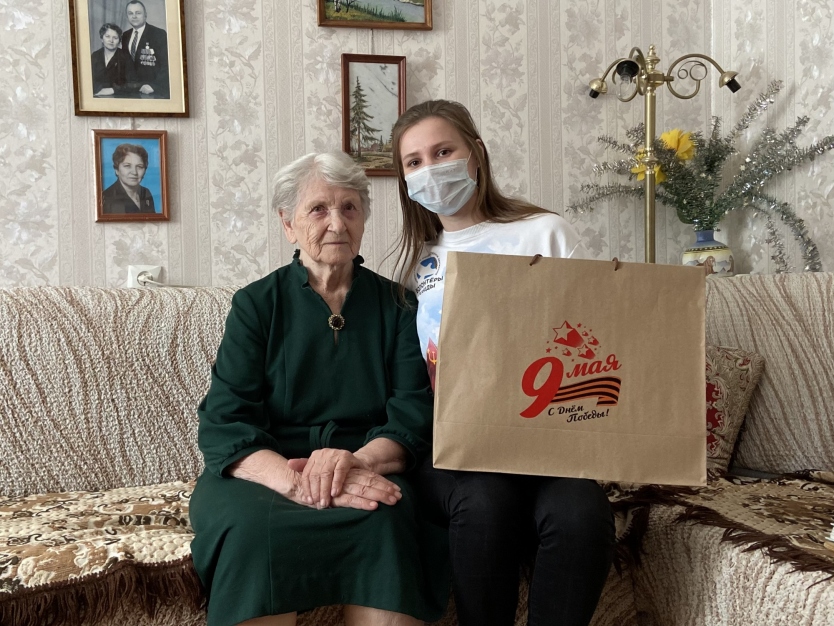Волонтёры вручили ветеранам подарочные продуктовые наборы и передали слова благодарности от всех жителей.