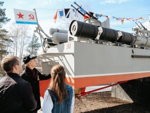 Первый заместитель председателя облдумы, секретарь регионального отделения «Единой России» Андрей Артюхов напомнил историю создания мемориал: «В конце 2017 года ветераны судостроительного завода обратились в общественную приёмную партии «Единой России» с просьбой создать в Тюмени памятник торпедному катеру. Памятник должен был олицетворить подвиг заводчан, которые в тяжелейших условиях строили эти катера, и военным морякам, доблестно сражавшимся на них. Было принято решение, что проект, связанный с изготовлением катера, возьмёт на себя наше региональное отделение, а сквер благоустроит город. 22 октября 2018 года памятник торжественно открыли. Теперь в сквере около катера проходят торжественные и памятные патриотические мероприятия».