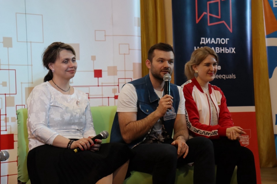 Завершился форум встречей проекта «Диалог на равных». Гостями встречи стали: Руководитель Кировского регионального отделения ВОД «Волонтеры Победы» Антон Рязанов, председатель Кировская Областная Организация «Российский союз молодежи» «Российский союз молодежи» Виктория Столбова, заместитель директор Политехнического института по проектной и профориентационной деятельности Светлана Царицына.