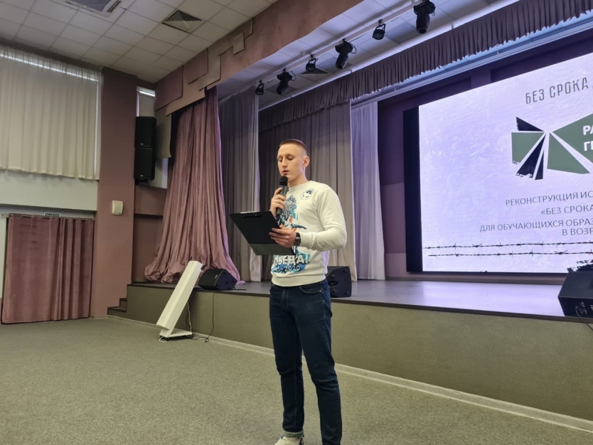 Сегодня Волонтерами Победы Краснодарского местного отделения было организованно мероприятие — урок - реконструкция исторических фактов «Без срока давности» в МАОУ СОШ №102 для учеников 5-9 классов.