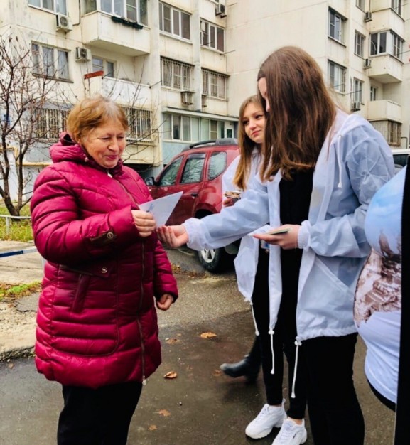 Одновременно с ребятами на улицы города вышли также активисты Школьных отрядов Волонтёров Победы. Ребята информировали жителей Краснодара о празднике и героях вблизи своих учебных заведений.