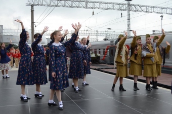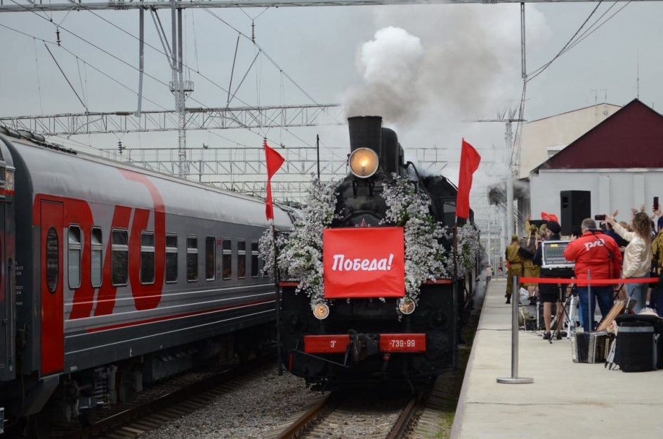 30 апреля в город-герой прибыл исторический подвижной состав времен Великой Отечественной войны, состоящий из товарных вагонов, платформы для перевозки военной техники, салона-вагона.