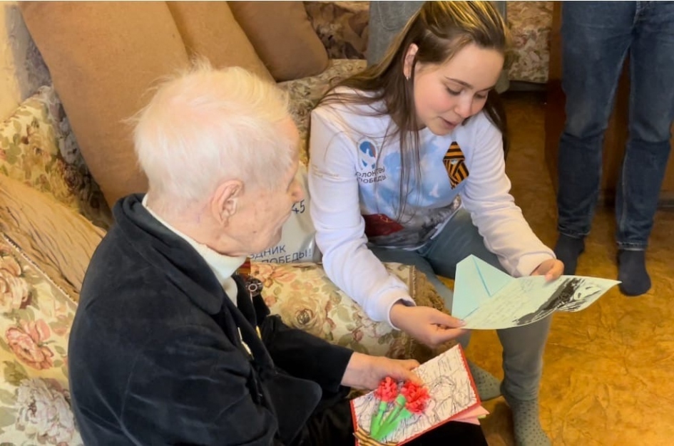 В свою очередь Волонтеры Победы и Единая Россия поздравили ветерана Великой Отечественной с наступающим праздником и вручили подарки. К поздравлению присоединились ректор