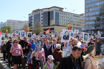 К шествию присоединился и глава региона - Дмитрий Николаевич Махонин. В Бессмертном полку он прошел с портретом своего дедушки – Иваном Яковлевичем Махониным.