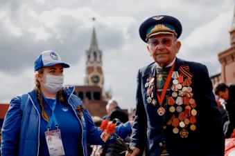 Добровольцы также исполнили мечты Героев. 8 мая в Москву прибыл ветеран Великой Отечественной войны из Ленинградской области, почетный гражданин Лодейнопольского муниципального района Александр Дмитриевич Дряпин. Сегодня Герой с трибун наблюдал за главным парадом страны.