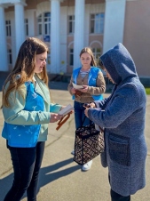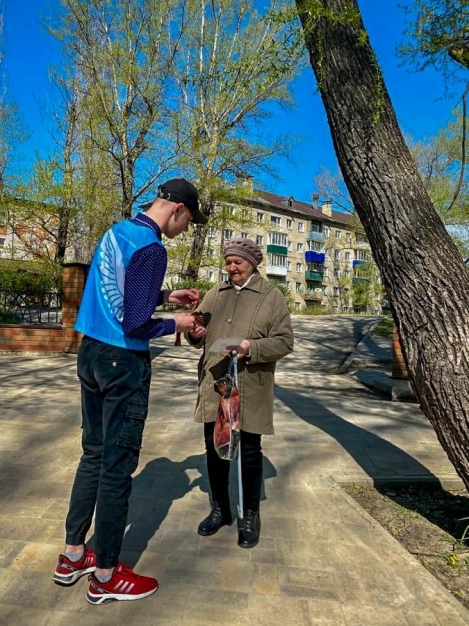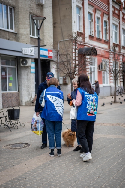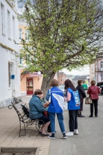 В городе Ельце дан старт Международной акция «Георгиевская ленточка». Студенческая молодёжь совместно с волонтёрами Победы вышла на улицы города и раздала жителям города символ Победы и письма Победы.