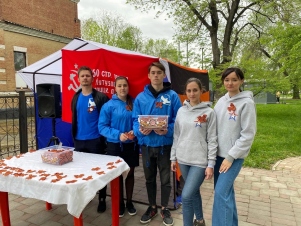 Калининский район Краснодарского края также присоединился к акции! Волонтёры Победы в станице Калининской раздают ленточки и рассказывают о ее истории и о том, как следует ее носить.