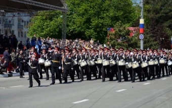 Парадным строем по улице Советов прошли 29 рот и 7 батальонов, более 1800 военнослужащих, юнармейцы, кадеты казачьего корпуса. На главной улице города-героя была продемонстрирована 21 единица военной техники.