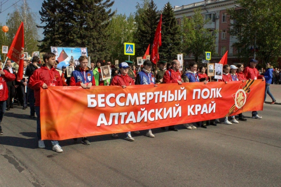 Возглавили колонну председатель Правительства Алтайского края Виктор Томенко, председатель АКЗС Александр Романенко, заместитель председателя Правительства региона Денис Губин, начальник управления молодёжной политики и реализации программ общественного развития региона, член Центрального штаба общероссийского общественного движения «Бессмертный полк России» Екатерина Четошникова.