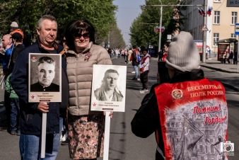 Сегодня, в День Великой Победы, в Барнауле прошло очное шествие «Бессмертного полка», в котором приняло участие более 52 тысяч человек. Участники акции большой колонной прошли от улицы Союза Республик, мимо трибун на площади Советов и остановились на улице Димитрова. Напомним, что 2 года подряд «Бессмертный полк» проводился в онлайн-формате.