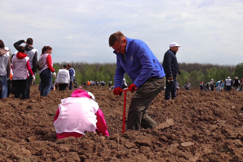 В Курской области в рамках акции посадили юбилейное, 20-ти миллионное по счету дерево. Дуб стал частью геоглифа в форме пятиконечной звезды, который создали из 33 897 деревьев – именно столько солдат и офицеров погибли в сражении на северном фасе Курской дуги.