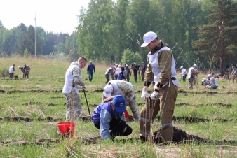 Сегодня в посёлке Памяти 13 Борцов Емельяновского района в рамках Международной акции «Сад Памяти» высадили 4 тысячи сеянцев сосны обыкновенной.