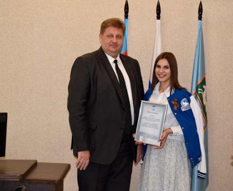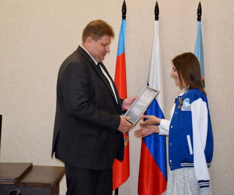 Сергей Татьянин вручил Алтайскому региональному отделению ВОД «Волонтёры Победы» благодарственное письмо за участие в мероприятиях, посвящённых празднованию 77-й годовщины со Дня Победы в Великой Отечественной войне. Он также отметил большой вклад волонтёров в организацию и проведение акций, приуроченных 9 мая.