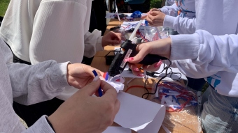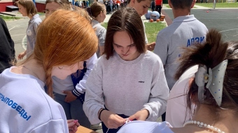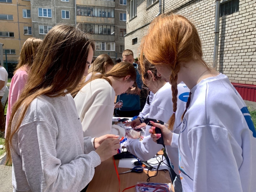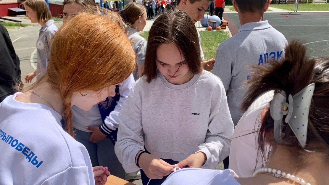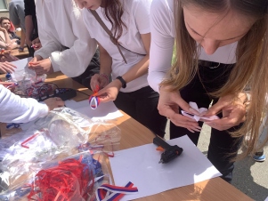 Ребята вместе с Волонтёрами Победы Алтайского регионального отделения в рамках мастер-класса могли сделать виньетку из ленты триколор. Наши активисты подробно рассказывали как правильно собирать изделие, а также давали памятные призы за выполненную рукодельную работу.