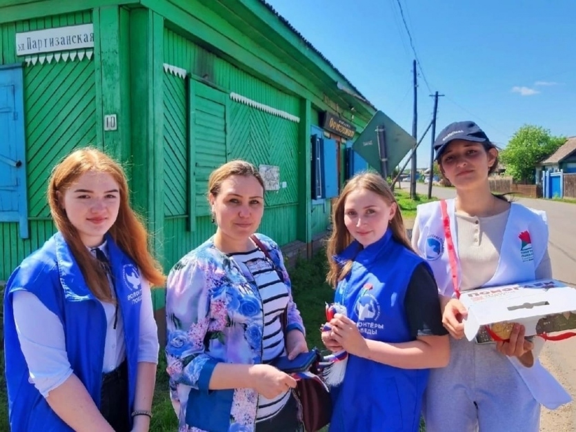 Волонтёры вручили жителям и гостям села символ праздника — ленты в цветах государственного флага Российской Федерации, которые были приняты с теплом и благодарностью.