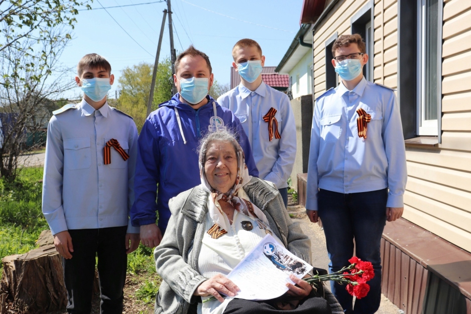 Добровольцы вместе со студентами Орловского техникума путей сообщения им. Лапочкина пожелали ветерану крепкого здоровья, бодрости духа и долгих лет жизни, а также передали «Письма Победы», которые написали учащиеся средних учебных заведений города Орла в преддверии 9 мая.