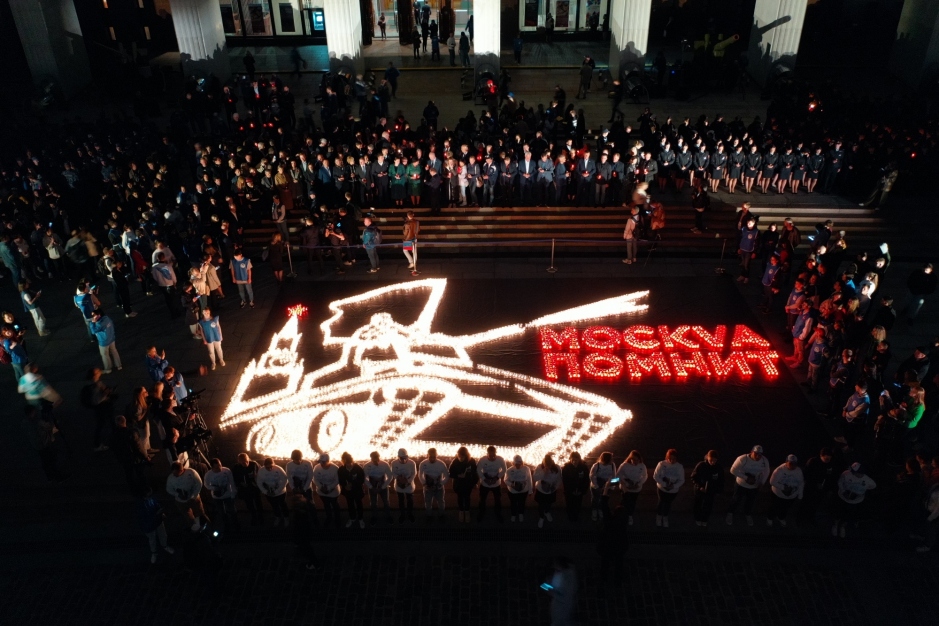 В России и странах зарубежья прошли Международные акции «Огненные картины войны» и «Свеча памяти». Третий год подряд в ночь с 21 на 22 июня Волонтёры Победы, партия «Единая Россия», представители общественных объединений и жители населенных пунктов зажигают огненные символы, которые рассказывают о вкладе регионов в Великую Победу, и тысячи свечей в память о тех, кто погиб в той страшной войне. Все картины связаны общей темой: «Трагедии и Победы».