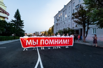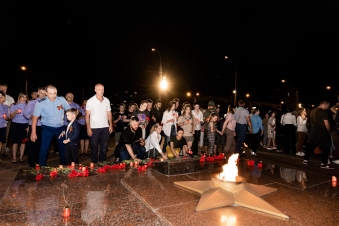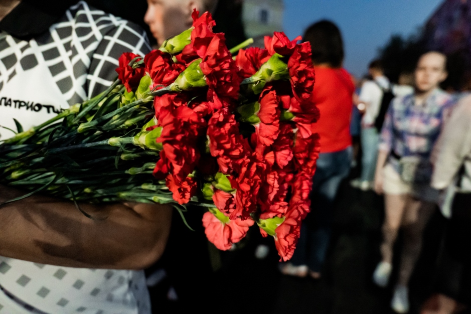 Под метроном, отбивающий минуту молчания, горожане почтили память тех, кто отдал жизни за Победу, кто погибая в боях, в тылу, во вражеских лагерях, спас миллионы своих соотечественников. В благодарность за их подвиг участники возложили цветы и свечи к монументу на площади Героев.